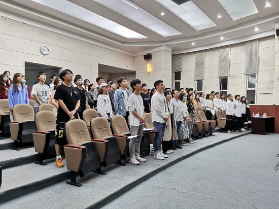 大会第一项,全体起立齐唱团歌。大会第二项,2020-2021届分团委学生会主要负责人及部门负责人竞选发言。