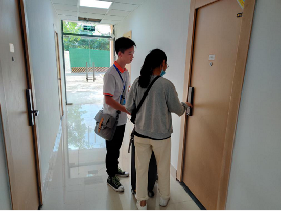 老师与志愿者在11栋与16栋宿舍楼下设立志愿站点,引导新同学报到注册,并帮忙搬运行李。院班子亲切询问了黄色直播