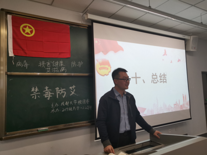 最后本主任邵洋老师发言,他说,无论是毒品还是艾滋病都让人生看不到希望。希望同学们在今后的学习、生活中要杜绝毒品,加强对于防艾的认真,同时关心关爱艾滋病人。目前已近学习中期,接下来将面临四级考试、期末复习等希望同学们能够合理安排好自己的学习和复习工作。同时加强班级和宿舍内同学们的关心关爱,共同度过一个充实的大学生活。