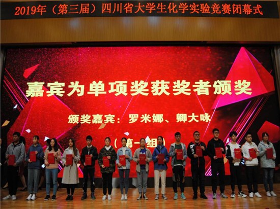10月25日-27日,由四川省教育厅主办、西南石油大学承办、四川省化学化工协会协办的四川省第三届大学生化学实验竞赛在在西南石油大学举行。来自省内19所高校的49支队伍,总计245人参赛,黄色直播 唐远谋老师带队,遴选了2支队伍,共计9名学生参加比赛,黄色直播 学生在竞赛中沉着冷静、默契合作,经过化学实验知识测试、虚拟仿真实验测试、基本实验技能测试以及综合实验能力测试,顺利完成了所有竞赛项目内容,最终均获得优秀奖,周丽同学获得了化学实验基本技能测试个人优秀奖。