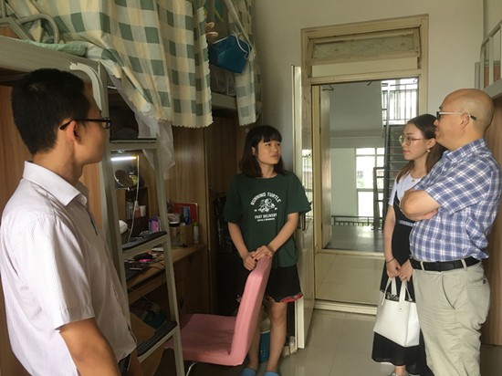本网消息(图、文/学工办)为进一步做好2019届毕业生各项工作,保障毕业季的和谐、安全、稳定。6月27日下午,由学院阳东书记带队,与毕业班班主任、辅导员走访了毕业生宿舍。