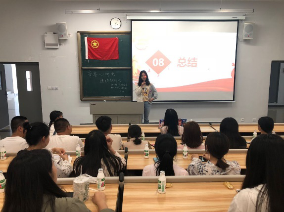 主题团日活动结束后,李泓霖学姐总结道:作为青年学生,我们要永远保持共青团员的先进性,让我们在党的正确领导下,永跟党走,携手奋斗,书写新篇章。