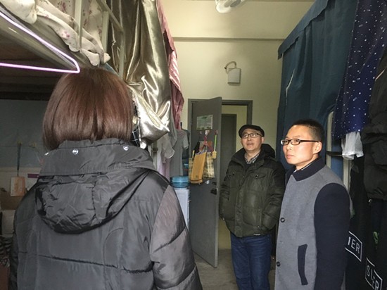 本网消息(图、文/学工办)2月27日下午,学院党委书记阳东以及学工办老师走访学生宿舍,了解他们新学期学习生活情况。