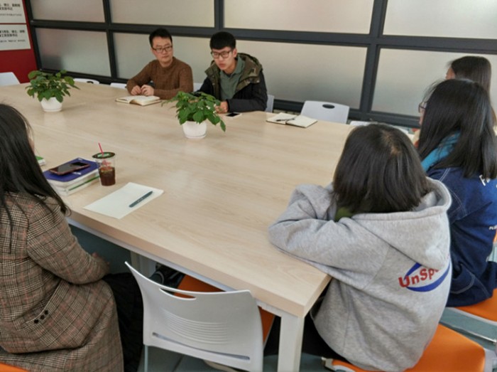 交流座谈会开始后,邵洋老师首先简单介绍学院公寓党建项目““模范党员1+1”学业引领计划”,他说,学院实施公寓党建项目目的一方面是发挥学生党员的先进带头作用在服务中成长,另一方面也是切实帮扶大学生新生,使得同学们能够更好更快的适应大学生活。之后,参加座谈的同学也交流了自己自入学以来的一些感受,在这过程中遇到的一些疑惑困难。