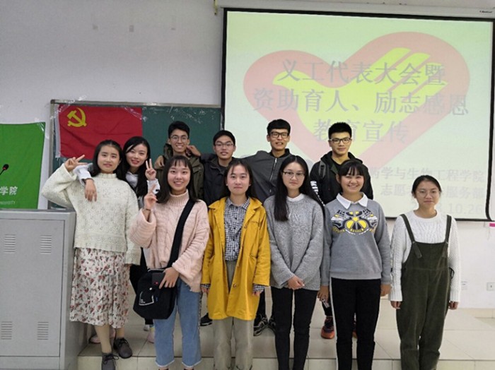 本网消息(图、文/杨静)10月26日中午,药学与生物工程学院举行资助育人、感恩教育宣讲会暨2018—2019学年第一次义工代表大会顺利举行。学院各班级义工代表,新一届志愿者工作部同学参加。宣讲会由志工部部长杨静同学主持。