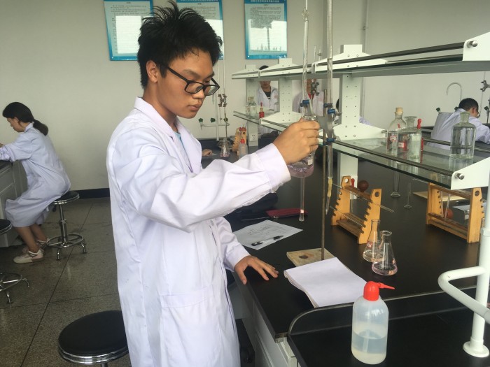 比赛开始,首先由聂忠莉老师向参赛同学介绍本次比赛的实验项目。本次比赛以氢氧化钠标准溶液的标定为题,在比赛开始之前,老师为大家介绍了一些关于实验操作的基本要求。随后同学们便投入了紧张有序的实验操作之中:仪器的清洗、基准物质的称量、待测液的取用等一系列的步骤,参赛的同学们用自己标准的操作向大家展示着我们专业的实验技能。期间老师走在同学们中间,仔细观察着同学们的操作并为他们打出相应的分数。最后,同学完成实验请老师检验,老师对同学们的操作作出细致的点评并耐心的针对试验中所存在的不足之处做出指点。