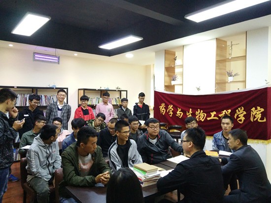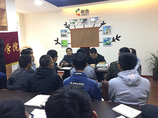 在13栋学习室开展了十九大学习交流座谈会。2017级新生各寝室代表,学院邵洋老师参加。