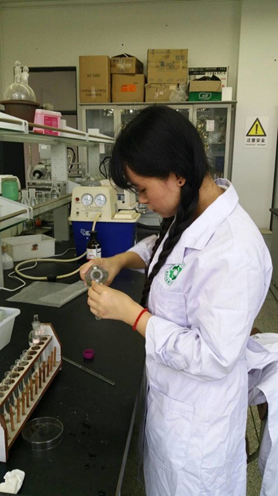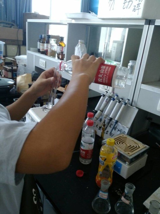 回到学校的第二天调研团队的成员来到实验室,对提取的水体标本从其酸碱度、硬度、重金属离子含量等方面进行检测。