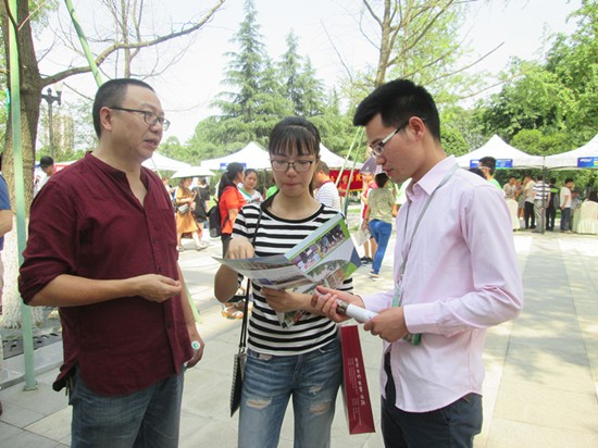 各专业的详细情况,志愿者们也积极的分发传单和简单讲解着自己对学院的了解。志愿者还带着咨询的人前往实验楼由实验室老师带领参观。活动一直持续到12:30才结束。