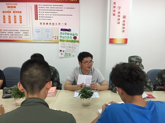 2016级制药工程专业许远良同学,同时也是一名退伍军人。他介绍了两年参军入伍的感受,自己在军队中成长很快。希望同学们积极参与到祖国的应征选拔。学院王国泽老师介绍了学校、政府对大学生应征入伍的各项政策,鼓励有志男儿积极参军入伍。