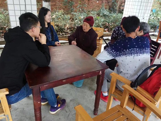 志愿者们八点半就到了学校前门,历经一小时左右的车程到达了本次活动场地,养老中心环境很清幽,非常适合老人居住的地方。在活动负责人简单介绍情况之后,大家便散开来与老年人交流聊天,不管是简单地拉家常还是听老人讲他们的青春往事,都是很有意思的。
