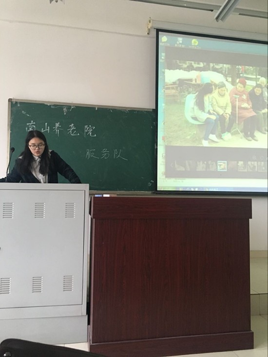 首先由志工部部长沈兰兰对南山养老院志愿服务的相关情况做了简单的概述,主要工作包括打扫卫生、陪老人聊天等。二期还对里面需要特别照顾的爷爷奶奶一一做了简单介绍。 接下来参会的同学进行的相互交流,志工部部长沈兰兰说: