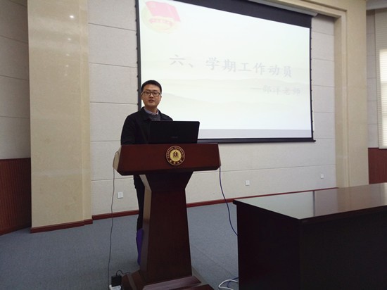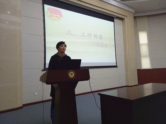 会议开始后,全体起立奏唱《光荣啊 中国共青团》。首先,由学生会副主席刘玺辰做分团委学生会本学期主要工作安排,他说本学期黄色直播