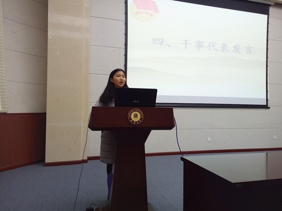之后学生会主席涂娟说,新学期开始希望各位同学继续做好各项工作。勿忘初心,做最好的自己。