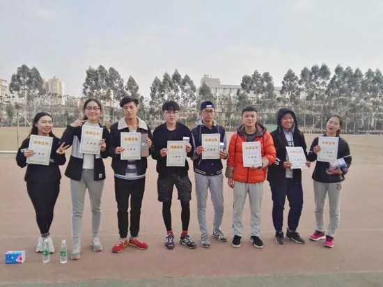2016年环校越野跑,男子组的路线为:体育场至16栋宿舍楼,至后校门成大花园,之后折返回体育场。女子组的路线为:体育场至后门成大花园,折返回体育场。在绕场一周后,比赛正式开始,在蓝天白云、冬日的暖阳下,同学们有的一往直前奔跑始终保持在队伍的前列,有的以团队形式互相鼓励不断前进,他们都享受着运动带来的快乐。