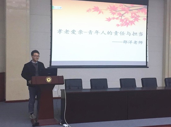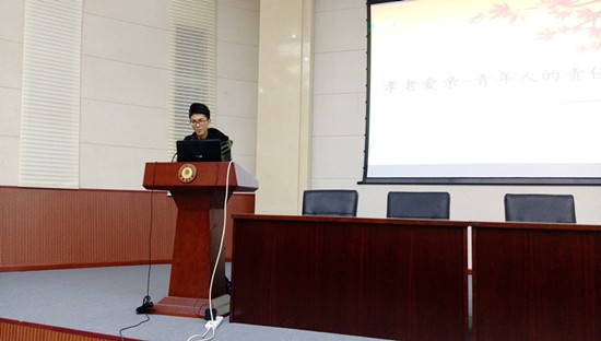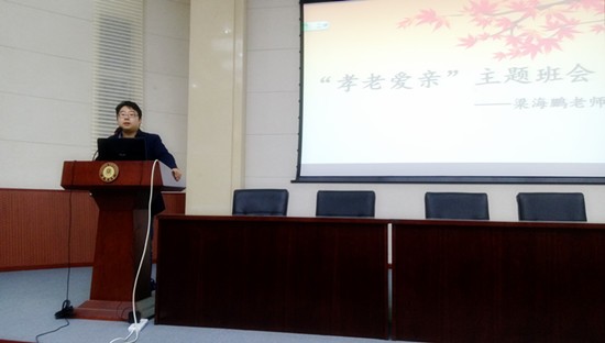 随后,梁海鹏老师阐述了他对“孝老爱亲”的理解,“孝老爱亲”不仅是中华民族的传统美德,而且也符合当前社会主义核心价值观的要求。敬老、爱老,是理应成为一项光荣而神圣的使命,它传递着阳光,让温暖撒到老人的心。 随着我国老年人口的急剧增多,维护老人,敬爱老人这主题显得尤为重要。