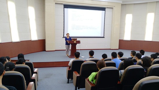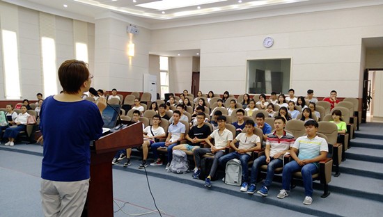 相关介绍结束后,学院党委副书记李行老师也对各位新生的到来表示热烈的欢迎。她表示,作为老师始终会把学生的成长和发展发展首位。努力使每一位同学能够充分发掘自己的潜力。同时作为新生,初入大学校园一直要提高安全意识,随时发现安全隐患。