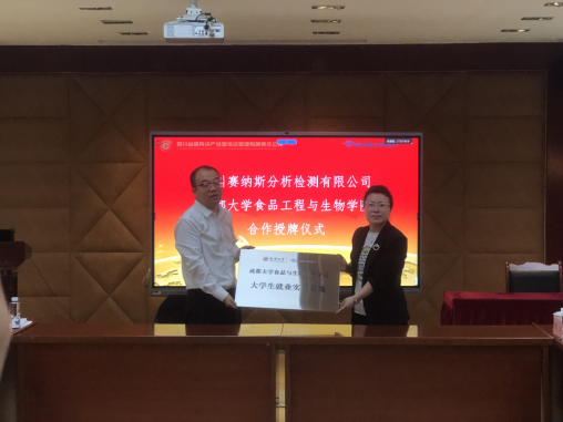 与四川赛纳斯分析检测有限公司(以下称“公司”)实习实训基地授牌仪式在公司园区举行。学院党委书记孙雁霞与集团公司执行董事项学明,出席授牌仪式并致辞。