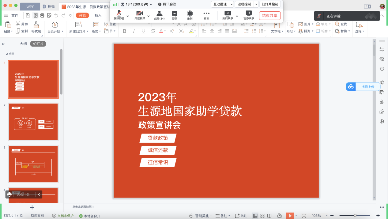 资助辅导员通过线上会议方式顺利开展了2023年生源地信用贷款诚信教育宣讲会。