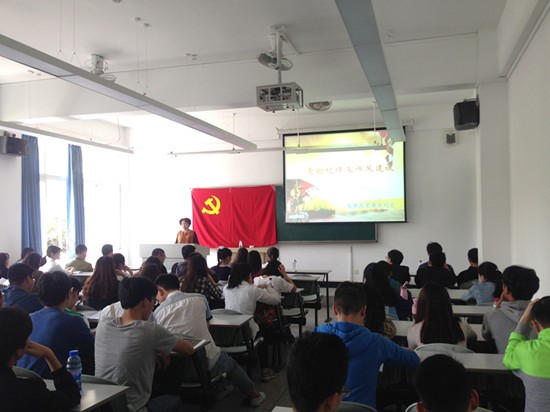 4月18日下午2点30,政治学院、机械工程学院、药学与生物工程学院联合举行的分党校发展对象培训班第三讲在6118开课。本次学习的主题是“党的纪律及作风建设”,任课教师是原电子信息工程学院分党委书记谷纯玉老师。