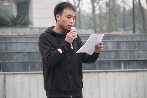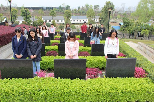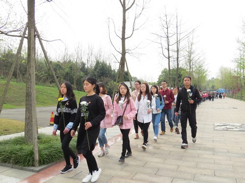 国旗护卫队在国旗下举行清明升旗仪式。升旗结束后,由药学与生物工程学院学生党支部学生代表王永平同学做国旗下发言,他表达了作为一名共产党员对为祖国革命事业、建设事业牺牲烈士们的崇高敬意,号召广大党员同志向先烈们学习,以及明确新时期大学生党员的新任务。随后主持人简要总结此次升旗仪式的目的和意义,组织在场人员有序登车,前往成都烈士陵园。