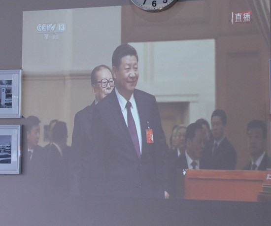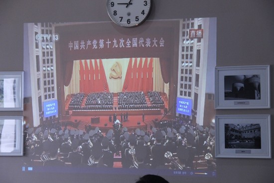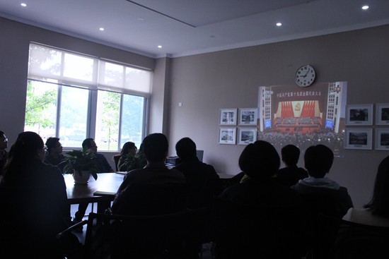 本网消息(文、图/李锐)2017年10月18日,在院党委的组织下,学院全体在职党员干部职工及入党积极分子集中收看了党的十九大开幕会现场直播。在党的十九大开幕会三个多小时的时间里,大家聚精会神,全神贯注,秩序井然,以严肃认真的态度听取了习近平总书记代表第十八届中央委员会向大会所作的报告,充分体现了全体党员干部职工对党的十九大胜利召开、对国家政治生活大事的热切关注。在观看党的十九大开幕会后,全体党员纷纷表示将进一步学习、掌握党的十九大的最新精神,进一步统一思想,提高认识,把党的十九大精神作为完成各项工作的指针和动力,为建设新的特色社会主义做出积极的贡献。