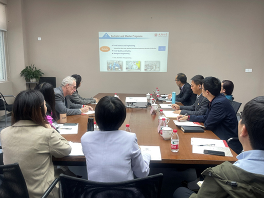 开展人才培养、项目合作、教师互访等相关事宜洽谈,学院有留学经历的教授及青年博士等10人参加了本次洽谈。英国交流中心成员Miss Vivien Xie,介绍了英国交流中心的基本情况和此行的主要目的,赵志平博士展示了学院师资队伍、本科生和研究生培养、重点学科与平台、学院荣誉以及国际交流合作等情况。