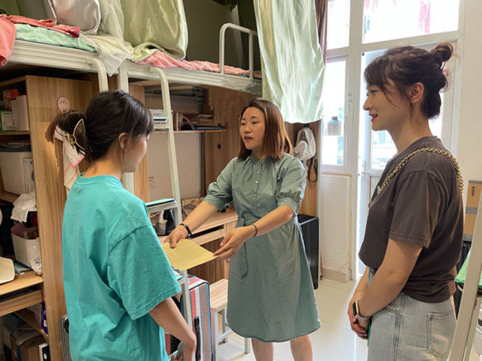 7月22日上午,学院副院长王新惠,学工办游曌老师和班主任周艳玲老师前往宿舍看望该受灾同学,亲切询问学生家中受灾情况,并送上学院慰问金,鼓励学生振作精神,在灾难与困难面前,学院与学校永远是同学们坚强的后盾!受灾同学表示第一时间感受到学校和学院的温暖,河南也受到社会各界的火速支援,希望家乡人民一切平安。王新惠表示,学院还将持续密切关注相关情况,继续做好受灾学生的后续困难帮扶工作,齐心协力共克时艰!