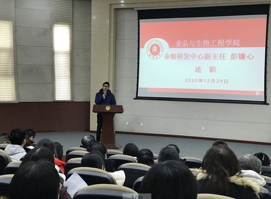 随后,张崟副院长对其分管的学院学科建设、质量工程、本科生及研究生的教学工作等情况以及自身的教学和科研成果进行了详细的汇报。杂粮中心彭镰心副主任对实验室的科研成果、重点实验室建设、人才培养以及地方服务与扶贫工作等情况进行了详细的汇报。
