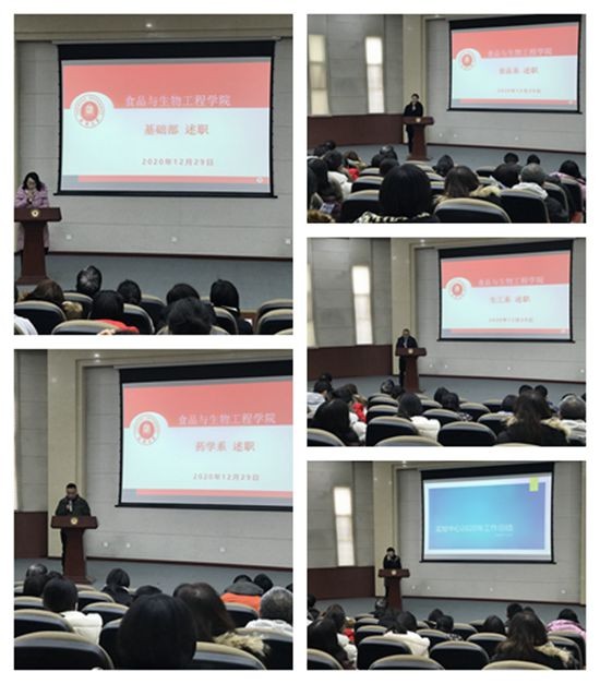 生物工程系、药学系、食品工程系、基础部以及实验中心主任分别对2020年度各系部室的工作进行了详细的汇报。