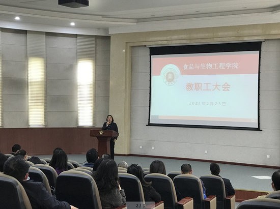 邹亮书记为全院教职工解读了学校2021年工作要点,包括全面加强党的领导,推动学校科学发展;落实重点工作任务,推动学校特色发展;深化内涵建设任务,落实立德树人根本任务;深化改革,增强学校发展动能等方面的具体内容。接着就学院目前的发展现状,结合学校2021年工作要点,将院班子讨论形成的“学院2021年重要工作落实方案”进行宣讲,对学院取得的各项成绩及未来发展方向进行展望。
