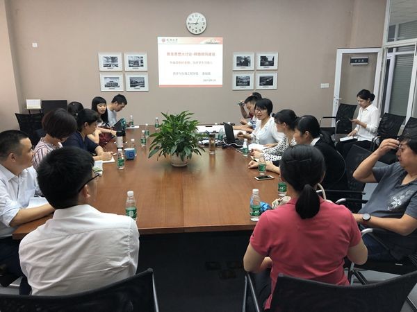 本网消息(图/张振,文/李红梅)为深入贯彻国家、省市关于师德师风建设工作相关精神,切实提升教师思想政治素养和师德水平,结合学校教育思想大讨论相关要求及其学院工作的实际情况,于2019年9月10日中午12:40,药学与生物工程学院基础部召开了主题为“争做四有好老师,当好学生引路人”的学习交流研讨会。会议由基础部主任李红梅主持,基础部全体参会。参加会议的还有在基础部承担教学任务的梅汝槐、张振等9位特聘副研究员及其食工系、生工系、实验中心的部分教师。