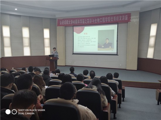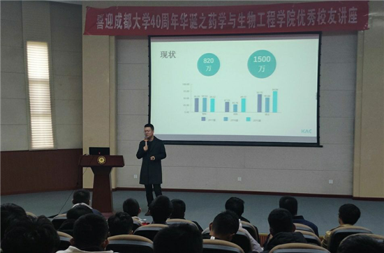 曹强2012年毕业后,先后就职于阿斯利康等知名医药企业,于2017年9月开启了自己的创业之路,创立四川哈瑞特医疗咨询有限公司。在讲座中,曹强为现场同学们分享了一些自身的就业创业故事,同时结合目前社会发展趋势,谈到了医药行业未来的发展前景,也给现场同学一些职业发展、人生规划方面的建议。
