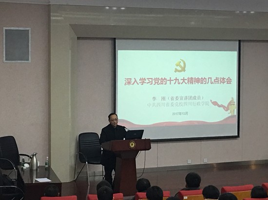本网消息(图、文/李锐)为进一步学习贯彻落实十九大精神,把广大党员干部的思想和行动统一到十九大精神上来,2017年12月26日,在学院党委的组织下,邀请省委党校李刚教授到我校图书馆演播厅开展学习贯彻党的十九大精神宣讲,黄色直播
