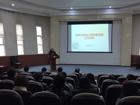 于9教演讲厅召开药学与生物工程学院干部述职述廉大会,院领导班子成员及全院教职员工参加了本次会议,会议由阳东书记主持。