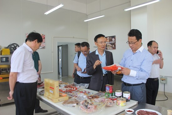 药学与生物工程学院肉类研发平台调研。在校领导赵钢教授、副院长郭晓强教授陪同下,景世刚副厅长一行考察了依托于学院的省重点实验室、工程中心、产业研究院等肉类研发平台,与研发平台专家教授、科技处(地方服务处)、药学与生物工程学院负责人等进行了座谈。