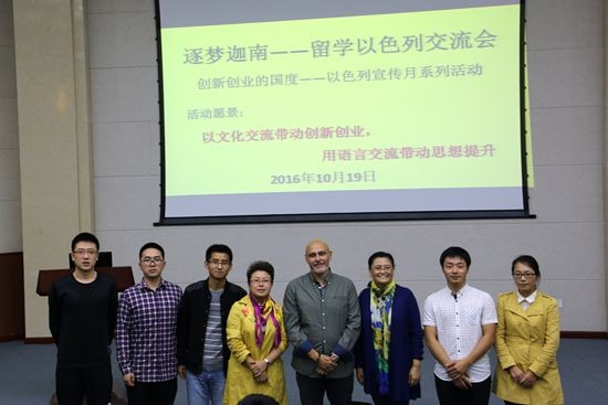 本网消息(文 图/严俊)10月19日晚上,药学与生物工程学院在九教演播厅举办了一场“逐梦迦南——留学以色列交流会”。来自以色列本·古里安大学的国家高端外专Aaron-Fait博士和7名留学以色列的师生在会上进行了交流。交流会由副院长孙雁霞主持,院党委副书记李行组织学生参加。