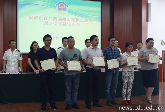 成都市食品药品投诉举报志愿者颁证仪式暨培训会在学术交流报告厅举行