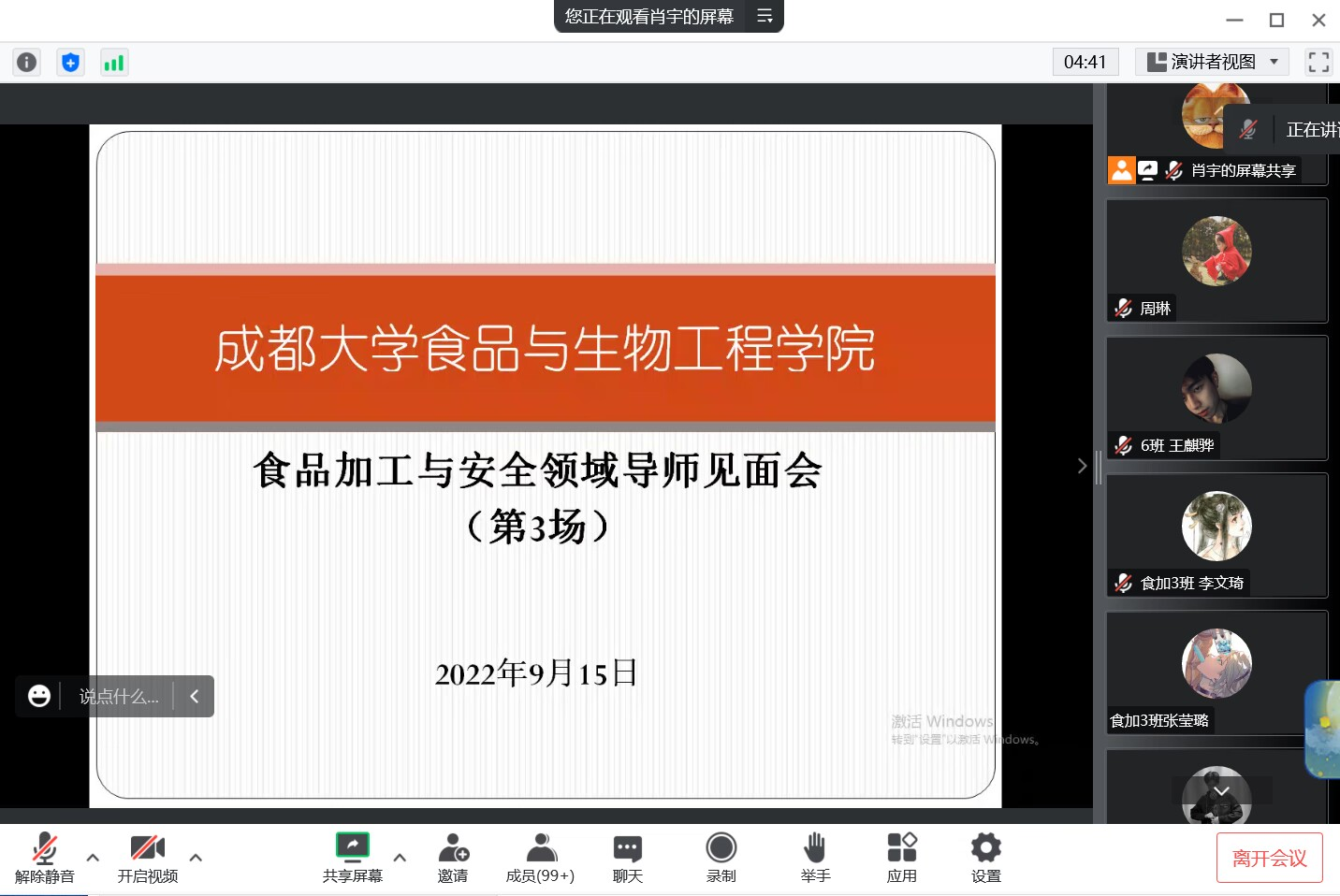为使2022级研究生更好地了解导师情况,顺利完成双选工作,结合目前疫情防控工作安排,学院于2022年9月15日在腾讯会议平台,举办研究生导师双选见面会。学院副院长、纪委书记王新惠,部分研究生导师代表及全体研究生新生参会。