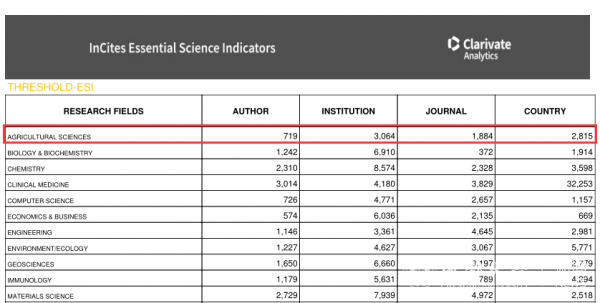11月10日科睿唯安发布了最新的ESI学科引用阈值,覆盖了从2012年1月1日到2022年8月31日的数据。我校前1%学科再获突破,农业科学继工程学之后成为我校第二个进入前1%的学科,标志着我校农业科学迈入国际一流学科行列,充分展现了我校农业科学的学科实力和国际影响力。