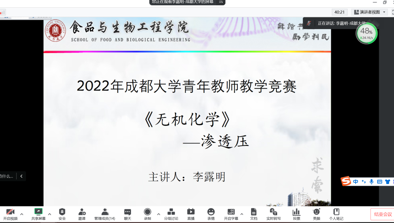 参赛教师将教学理念融入到课件内容中,基于自身扎实的学识,从教学内容、教学组织、教学特色等方面着手,展现出了高质量的课堂教学。评委们依据比赛评分标准进行现场评分。通过竞赛,李露明老师被评为院级特等奖,将推荐至学校参加校级复赛;奉美林、卢云浩和谢松志三位老师荣获院级一等奖。