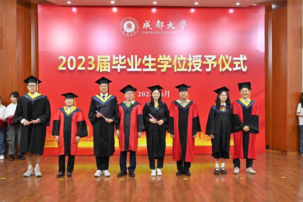 在全体起立奏唱国歌之后,唐远谋老师宣布仪式正式开始。校党委常委、院长刘达玉教授上台致毕业寄语,祝贺同学们圆满完成学业,顺利取得学位,告别成大、踏上新的人生征途。他说,成大给予同学们的最大财富不简单是知识,而是一种对真善美的执着信仰和由衷热爱。同时,也希望同学们工作中要学会与人相处,多请教,少埋怨;多付出,少计较;多动手,少旁观;多勤快,少慵懒。经过今天的毕业典礼和学位授予,你们就要踏上新的征程,无论你们走到哪里、身处何方,希望每位毕业同学要把食生学院永远放在心里,食生学院如同你们的家长一样,会倾尽所能,默默的关注支持你们的成长,不管今后你们居庙堂之高,或是处江湖之远,学院永远是守望你们的灯塔,将一直照亮大家前进的路。