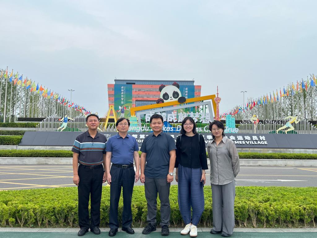 在学院领导及教师代表的陪同下,隋晓楠教授现场参观了学校大运会场馆及学院实验室。