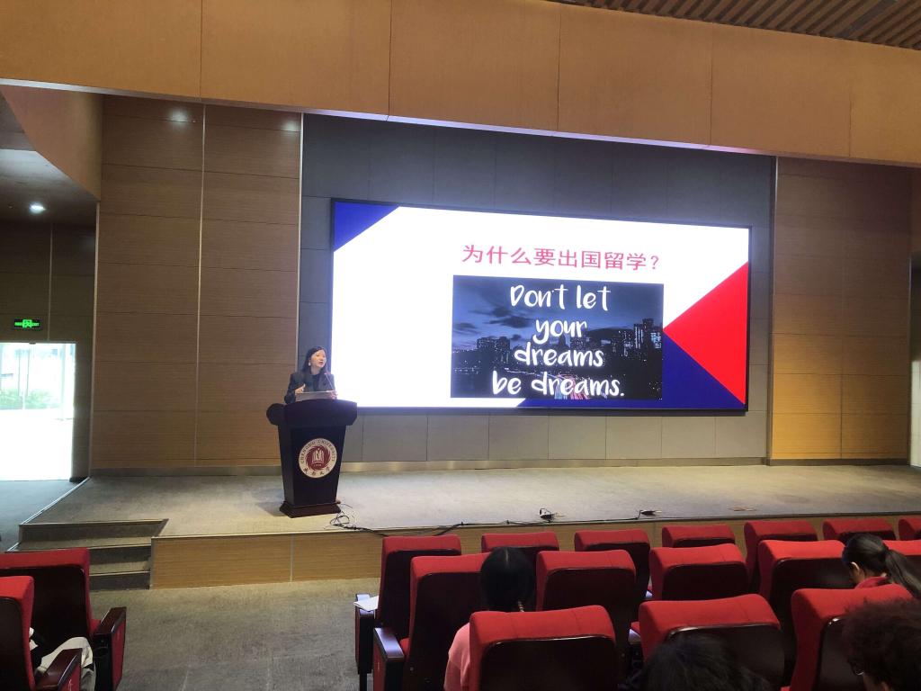 最后,邀请的考研规划辅导讲师董老师通过详实的数据、生动的案例介绍了从考研备考、目标院校选择等方面进行了深入的交流,针对性地介绍了同学们在报考院校时遇到的问题,并提出了具体实用的操作方法和备考建议。邀请的出国留学情况嘉宾张老师,从为什么要出国留学、不同国家地区留学院校选择情况介绍、出国留学的优势等方面进行了详细的交流介绍,希望同学尽早确定目标提前做好准备。