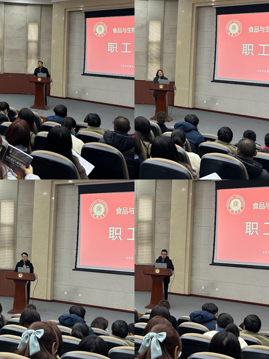 新学期教职工大会在学院演讲厅召开,全体教职工参加会议,全体院班子成员出席会议,会议由副院长张崟主持。