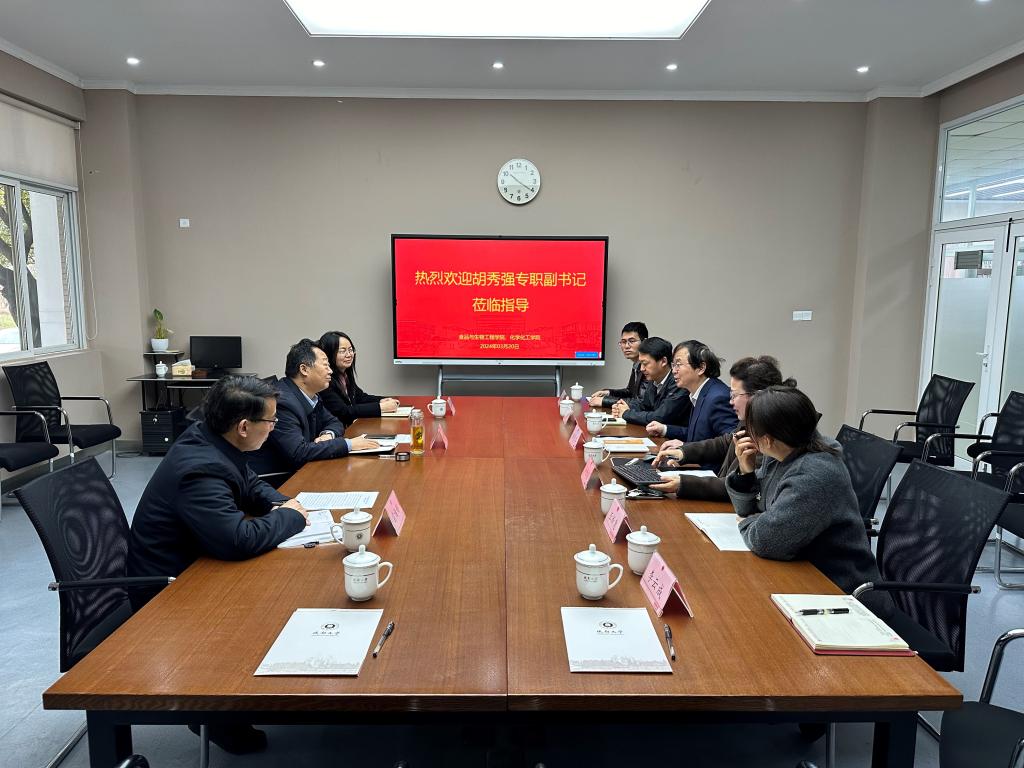 胡秀强认真听取了学院班子的工作汇报,对学院近年来抓班子、带队伍、团结务实及取得的成绩给予了充分的肯定,并围绕学院未来战略规划、近期发展目标、校企合作增效、学科专业提质、教学空间优化等工作与学院班子成员进行了充分交流。