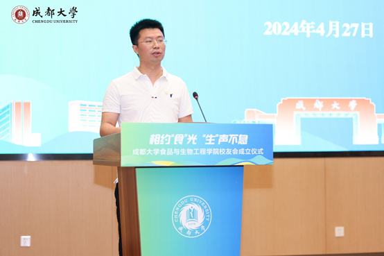 刘达玉对来到现场的校友们表示热烈欢迎,并对学院近年来发展情况进行介绍。他谈到了成立食生学院校友会的意义,并对校友会未来的发展提出建议。他说,成立校友会是提升学院人才培养质量、促进招生就业、赋能成果转化的重要举措,是关系到学院和师生发展的大事。他希望校友们能深度参与人才培养建设,尤其在打造实习实践基地方面,能不断提高人才培养质量和就业质量;在科学研究和产业发展方面,能抓住卡脖子关键技术需求,参与新品种生物芯片的研发,校企联合科技攻关,赋能现代产业体系的高质量发展。