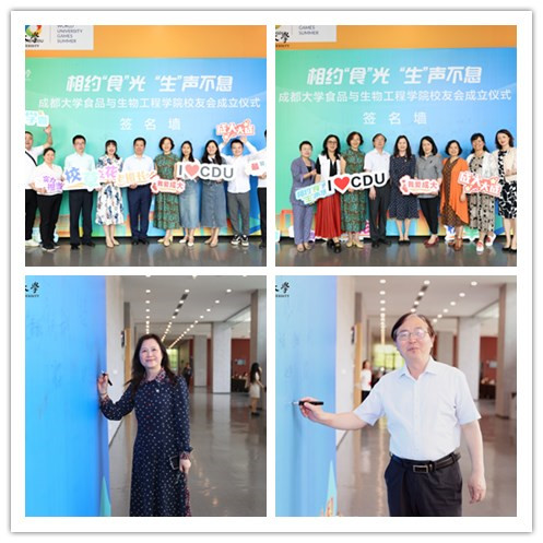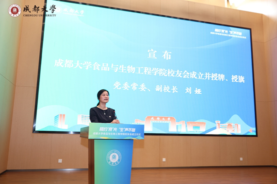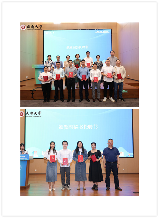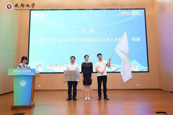 校友会成立,为食生学院校友会授牌、授旗,并为当选会长、秘书长颁发聘书,受邀教师代表为第一届理事会理事颁发聘书。