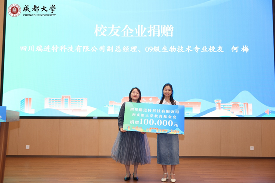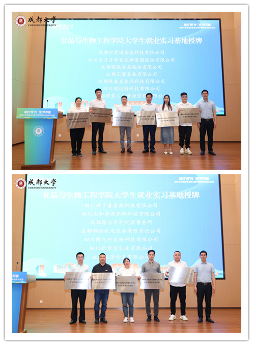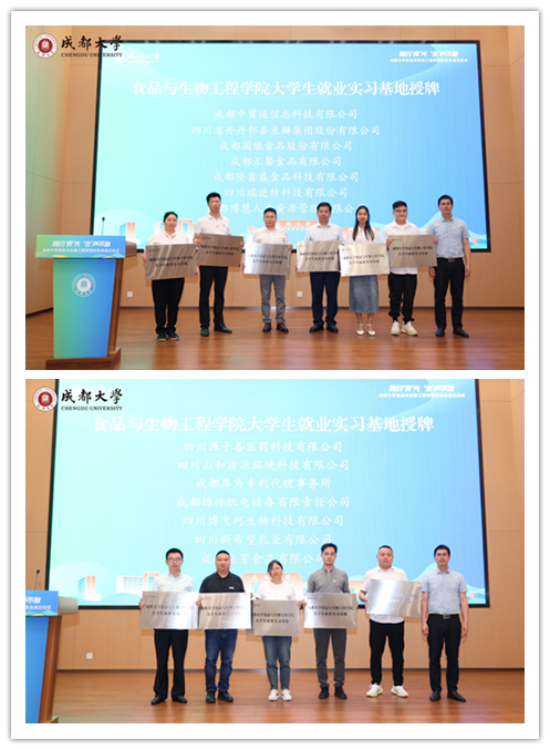 学院副院长张崟与四川博飞珂生物科技有限公司、四川新希望乳业有限公司等5家企业代表签约院企科研项目合作书。2009级生物技术专业校友何梅代表四川瑞进科技有限公司向学校捐赠10万元,定向用于学院教学、科研和人才培养。杂粮加工重点实验室副主任彭镰心为成都中国贸通信息科技有限公司、四川省丹丹郫县豆瓣集团股份有限公司等14家企业授“就业实习基地”牌。16名优秀校友受聘为学院大学生职业生涯和就业创业导师。