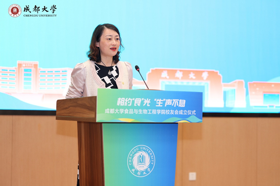 彭晓琳在会上致辞,她对学院校友会的成立表示祝贺。她表示,成立食生学院校友会,旨在为校友们提供一个学习和成长交流的平台,通过这个平台能更好发挥人才优势,为学院发展献计献策,促使校友与学院合力,共同为黄色直播